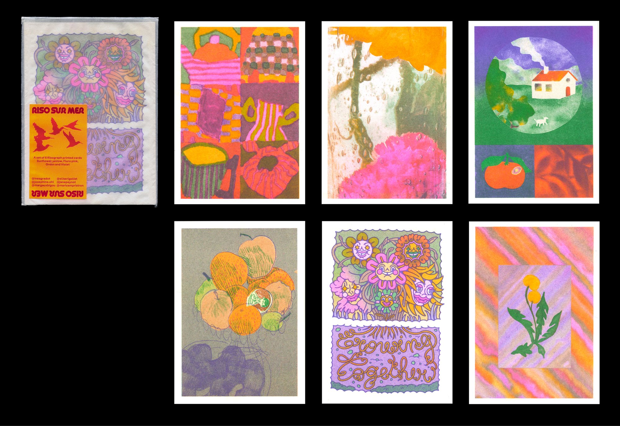Risographed card set, 6 units, 10x14cm.